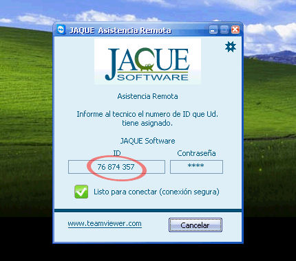 Finalmente, una vez que la aplicación de Asistencia Remota se esté ejecutando, el personal de JAQUE Software le solicitará el número de ID que puede identificar en la siguiente captura de pantalla: